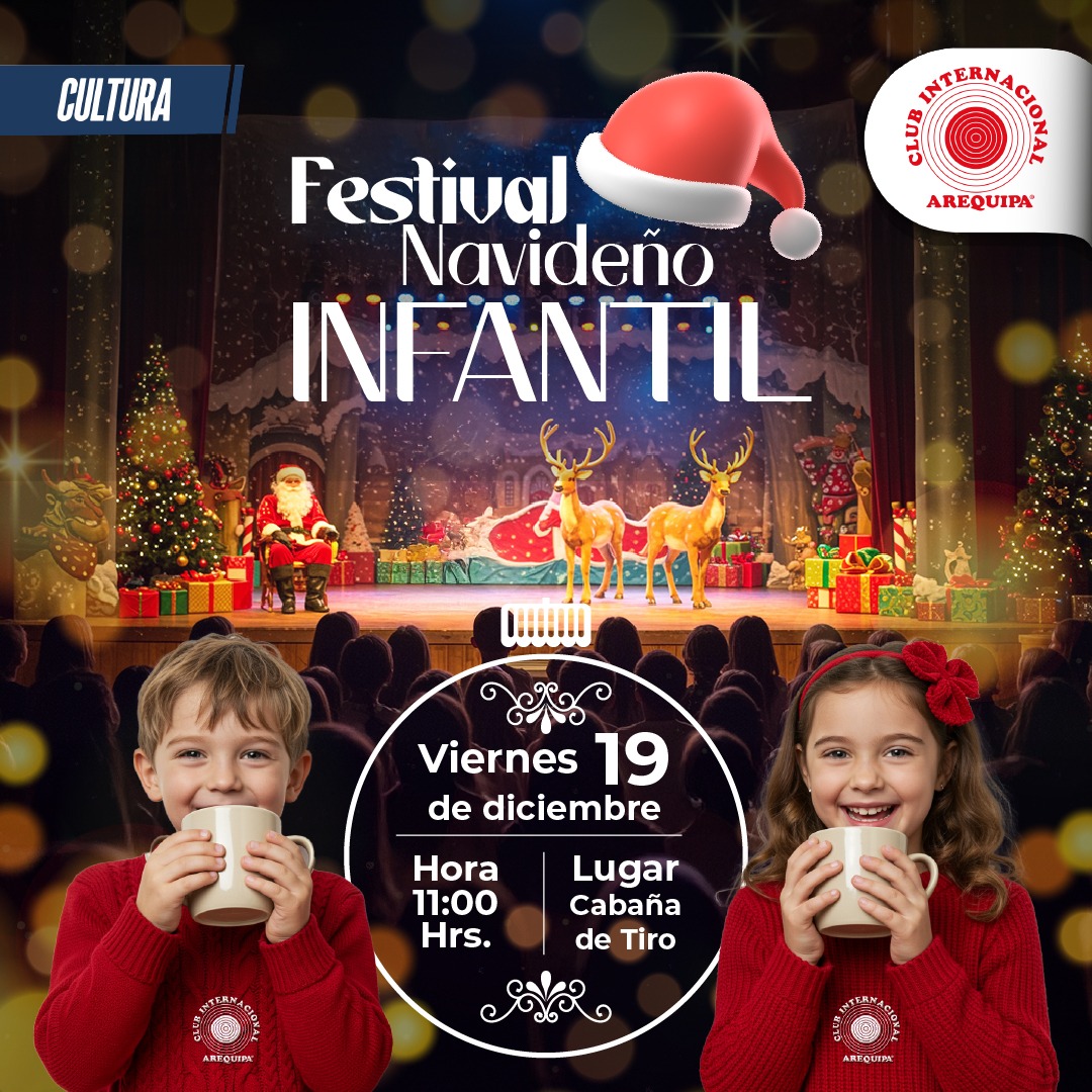 El Directorio del Club Internacional Arequipa, presidido por el Dr. César Cornejo Samanez, junto con la Vocalía de Cultura a cargo de la Sra. Ana Luisa Cámara Espinoza, invita a nuestros socios y socias a compartir un Festival Navideño, pensado para celebrar la unión, la familia y el espíritu que nos identifica como club.