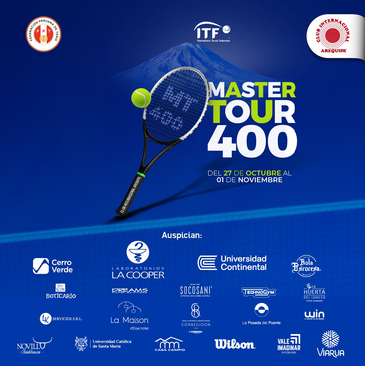 Prepárate para disfrutar del ITF World Tennis Masters Tour – MT400 Arequipa 2025, un torneo que reunirá a jugadores de distintas edades y categorías en las canchas del Complejo Tenístico del Club Internacional Arequipa. ![]()